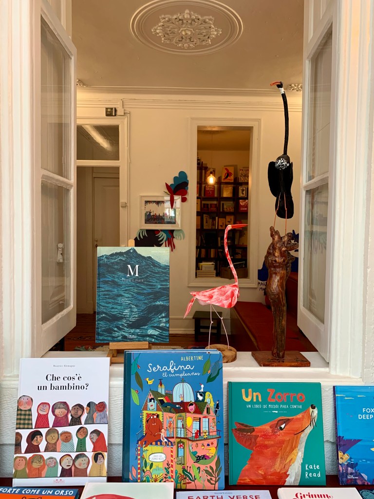 V knjigarni lahko najdemo bogato ponudo kakovostnih knjig za otroke najboljših portugalskih in mednarodnih neodvisnih založb. Knjigarna je tudi pomembno stičišče ilustratorjev in knjižnih ustvarjalcev, saj se tam velikokrat odvijajo tudi literarni večeri in delavnice. Prostori knjigarne so hkrati tudi prodajni razstavni prostor, namenjen ilustracijam izstopajočih sodobnih knjižnih ilustratorjev.